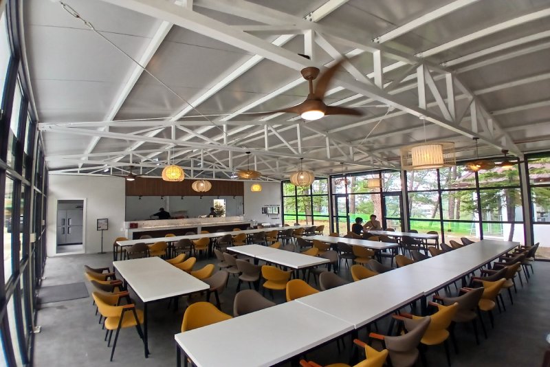 学校内設備食堂・売店・自習室・ジム・ラウンジ・キャンプエリア・カフェ・ゴルフ打ちっぱなし